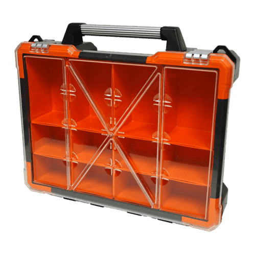 Since 1947, Homak has maintained its reputation as an industry leader in manufacturing durable products of exceptional quality. A business that started out manufacturing steel kitchen cabinets has evolved into a trusted name in tool storage and organization solutions. The Homak 12 Bin Portable Plastic Organizer is the perfect complement to your workspace, offering a convenient portable parts storage case that helps you keep small hardware and parts in order, no matter where the job takes you.