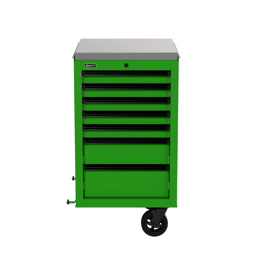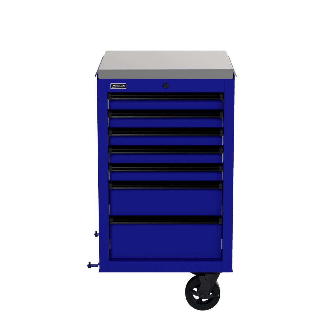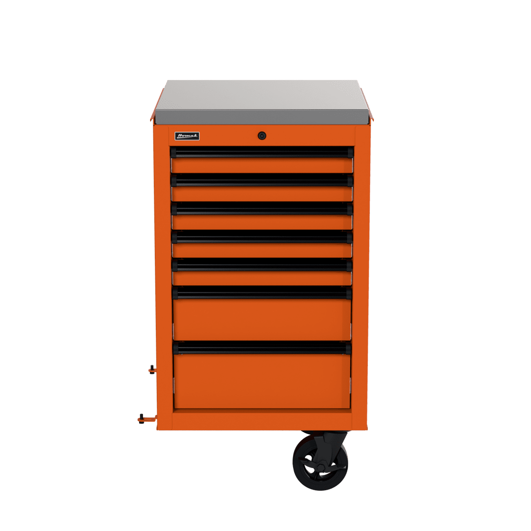 The Homak 22” RS Pro Side Cabinet is the ideal compact and flexible storage solution. This versatile toolbox side cabinet features a durable stainless-steel work surface to handle heavy-duty projects, lift latch drawer pulls to prevent accidental openings while moving, and full-length aluminum drawer pulls with black end caps to provide hassle-free access to tools. Each drawer has a 100-pound weight capacity and removable ball-bearing glides for smooth opening and closing. Included non-slip PVC foam drawer liners allow for efficient tool storage and optimization, while dual 6”x2” casters with 660-pound weight capacity enable easy movement. An HMC high-security tubular locking system offers improved security to keep your tools safe. The Homak 22” RS Pro Side Cabinet comes in five dynamic colors: Fury Red, Midnight Black, Rally Sport Blue, Competition Orange, and Monster Green.