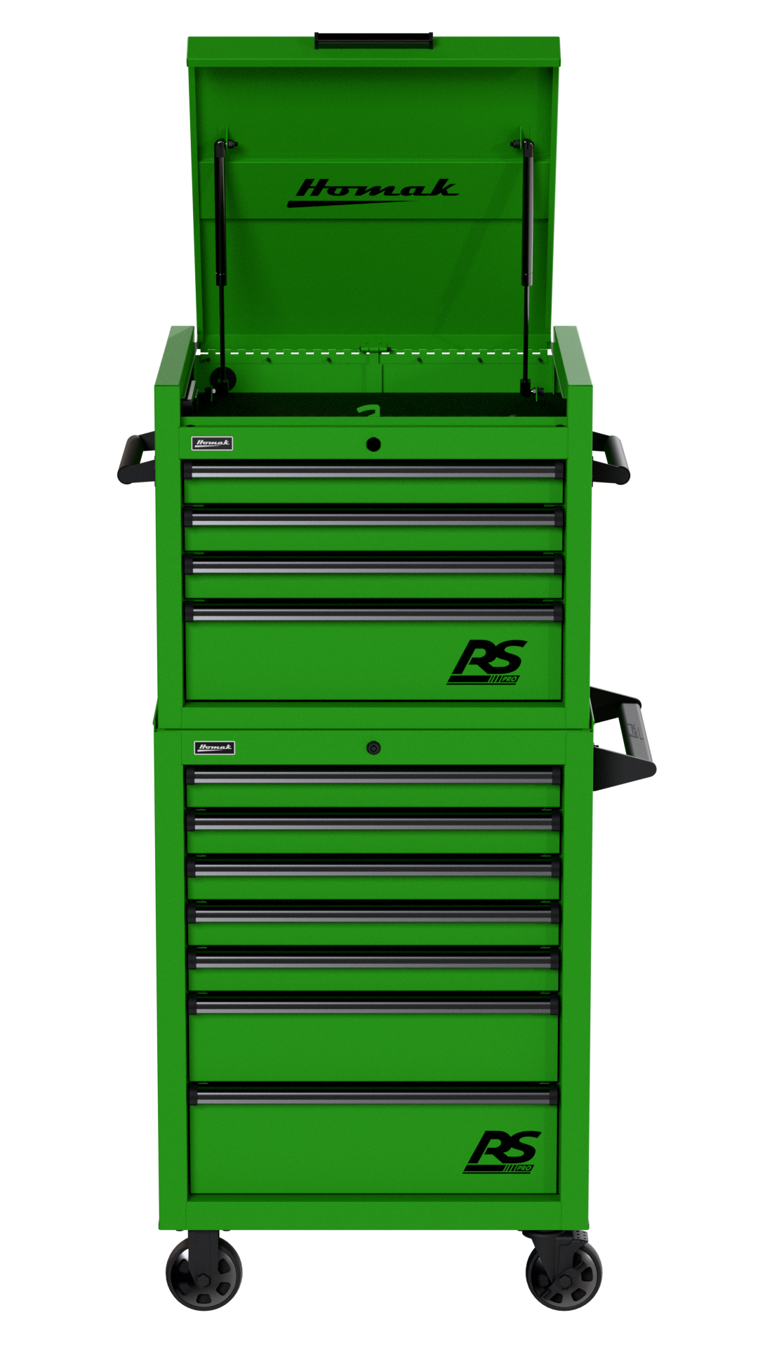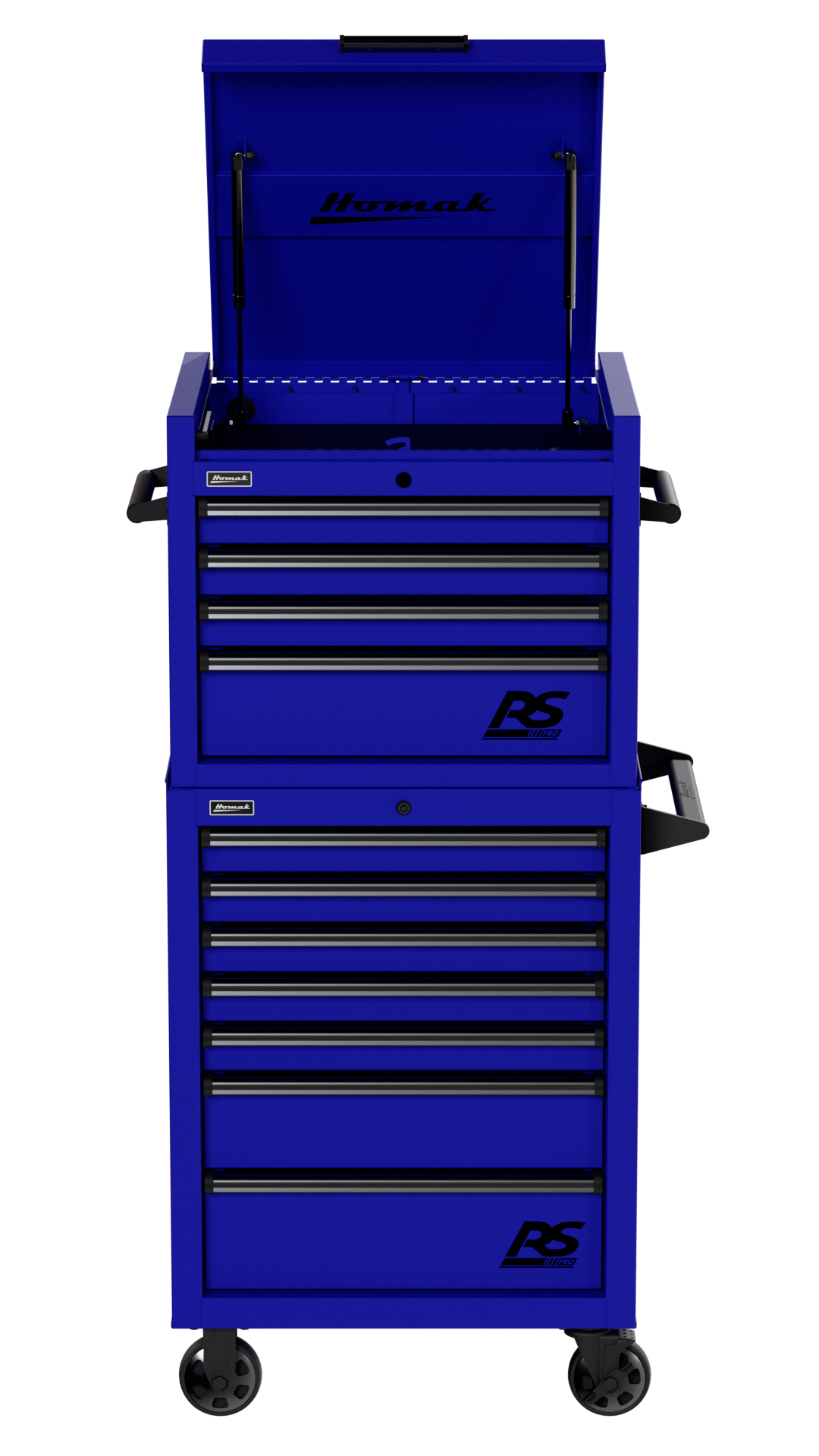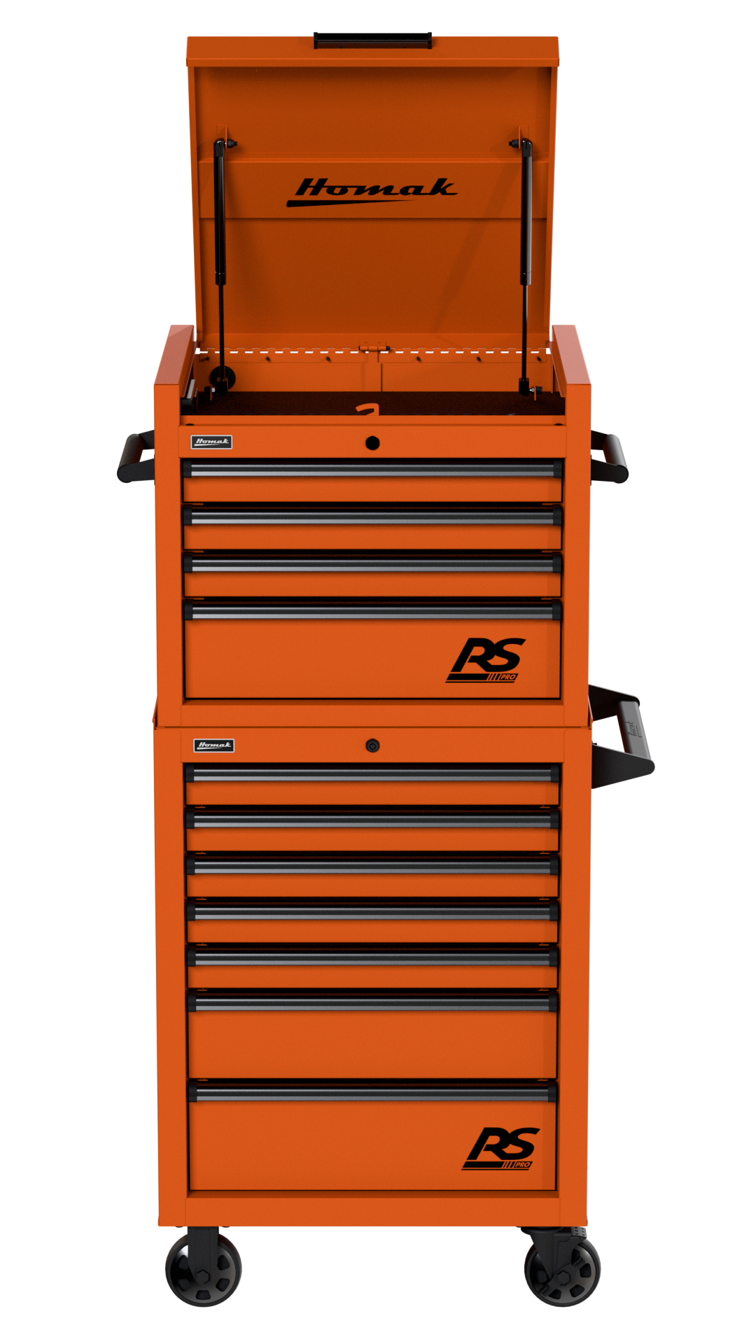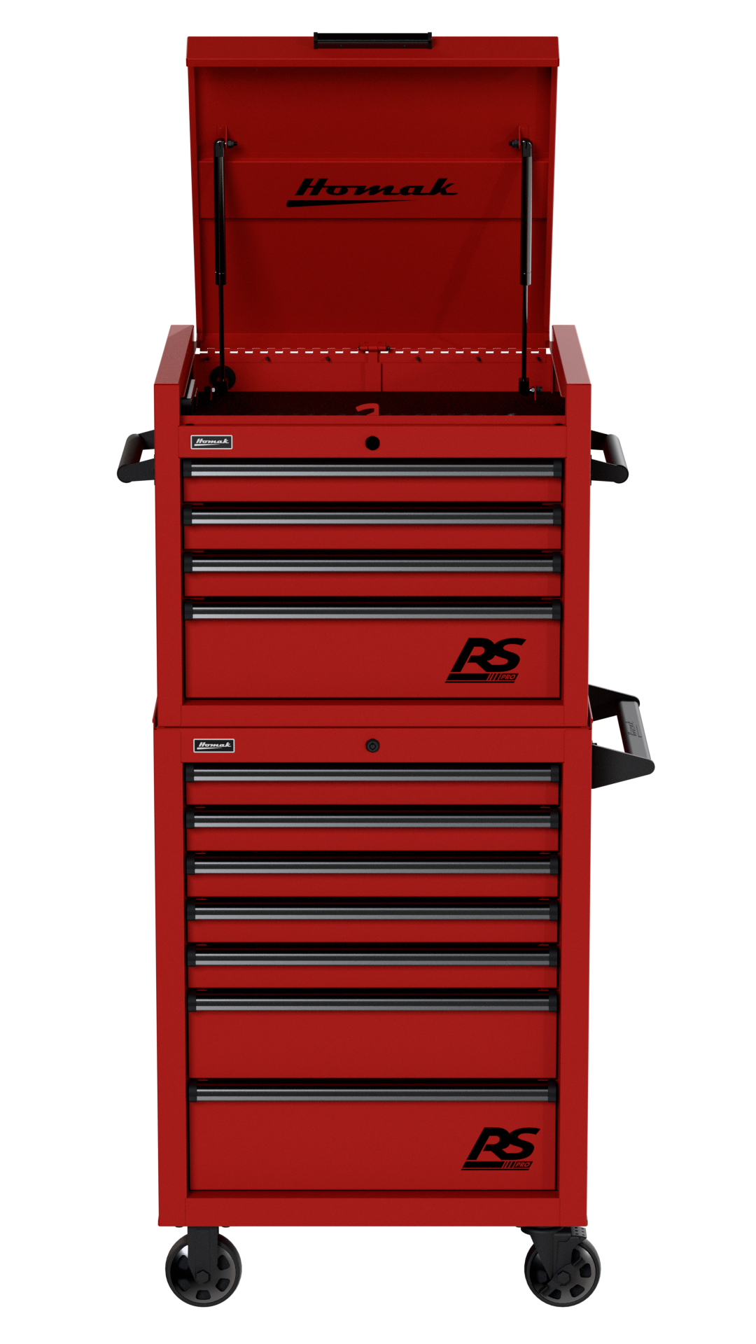 Top Chest includes four (4) drawers and lockable top till with full-extension gas struts and a power strip containing three (3) electric outlets to store and charge phones, laptops, and other devices.
