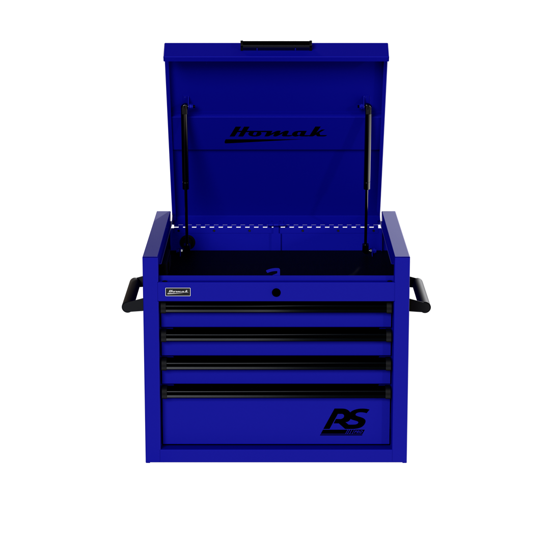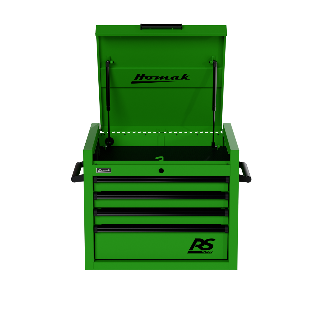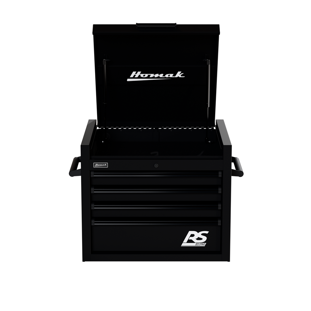 The Homak 27″ Top Chest RS Pro epitomizes advanced tool storage options for the modern garage or workspace. This top tool chest is not just a toolbox; it’s an investment in organization and durability. Designed as a top chest toolbox, its sleek structure fits perfectly as an upper toolbox on your workbench, seamlessly blending with other storage solutions or making a statement as a standalone benchtop toolbox.