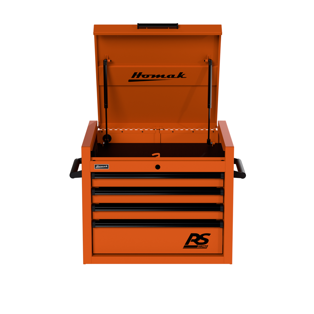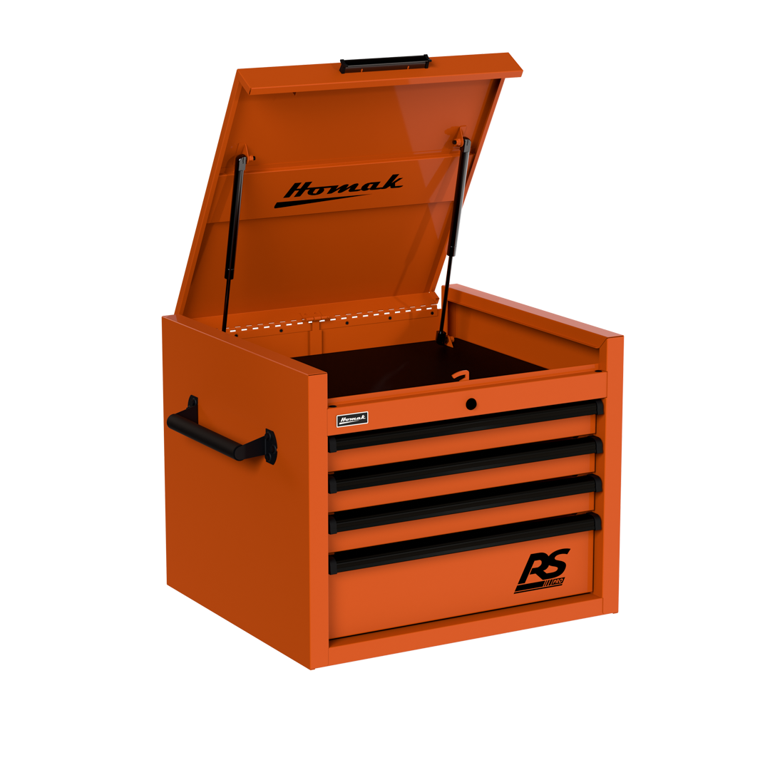 The 27″ Top Chest RS Pro comes in five bold colors: Fury Red, Midnight Black, Rally Sport Blue, Competition Orange, and Monster Green, ensuring that not only does it store your tools efficiently, but it also adds a touch of flair to your workspace. Experience the future of tool storage with the Homak 27″ Top Chest RS Pro.