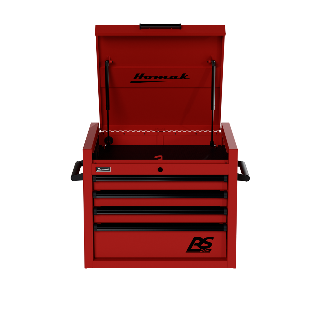 Since 1947, Homak has maintained its reputation as an industry leader in manufacturing durable products of exceptional quality. A business that started out manufacturing steel kitchen cabinets has evolved into a fierce competitor in the top toolbox space. The Homak 27″ Top Chest RS Pro’s sleek design perfectly complements any garage or workspace. Upgrade your top tool chest with a Homak.
