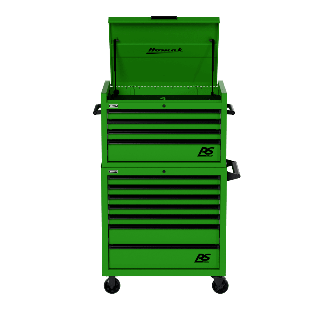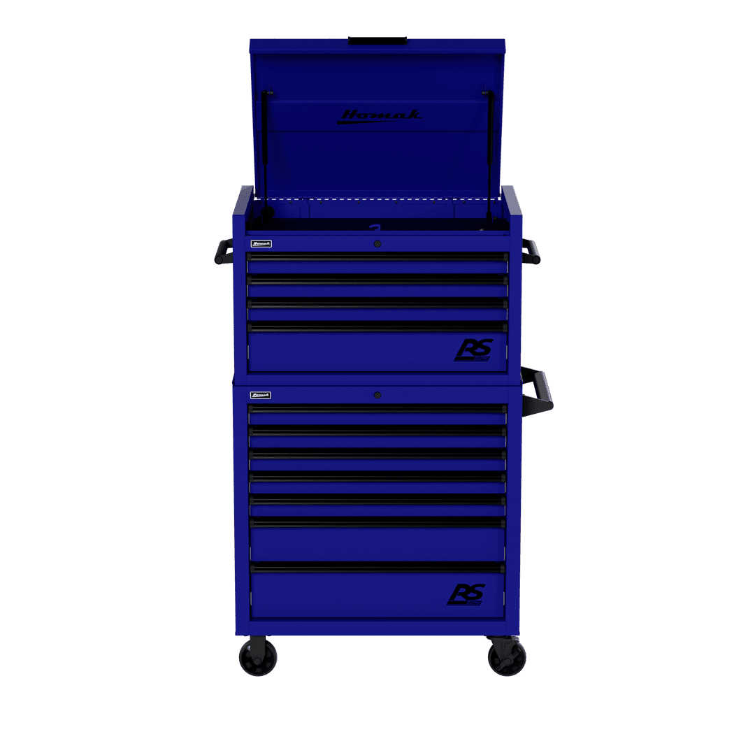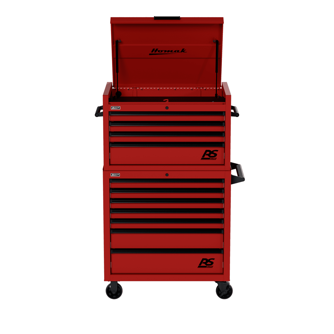 Top Chest includes four (4) drawers and lockable top till with full-extension gas struts and a power strip containing three (3) electric outlets to store and charge phones, laptops, and other devices.