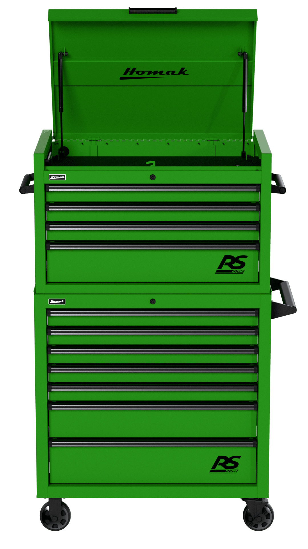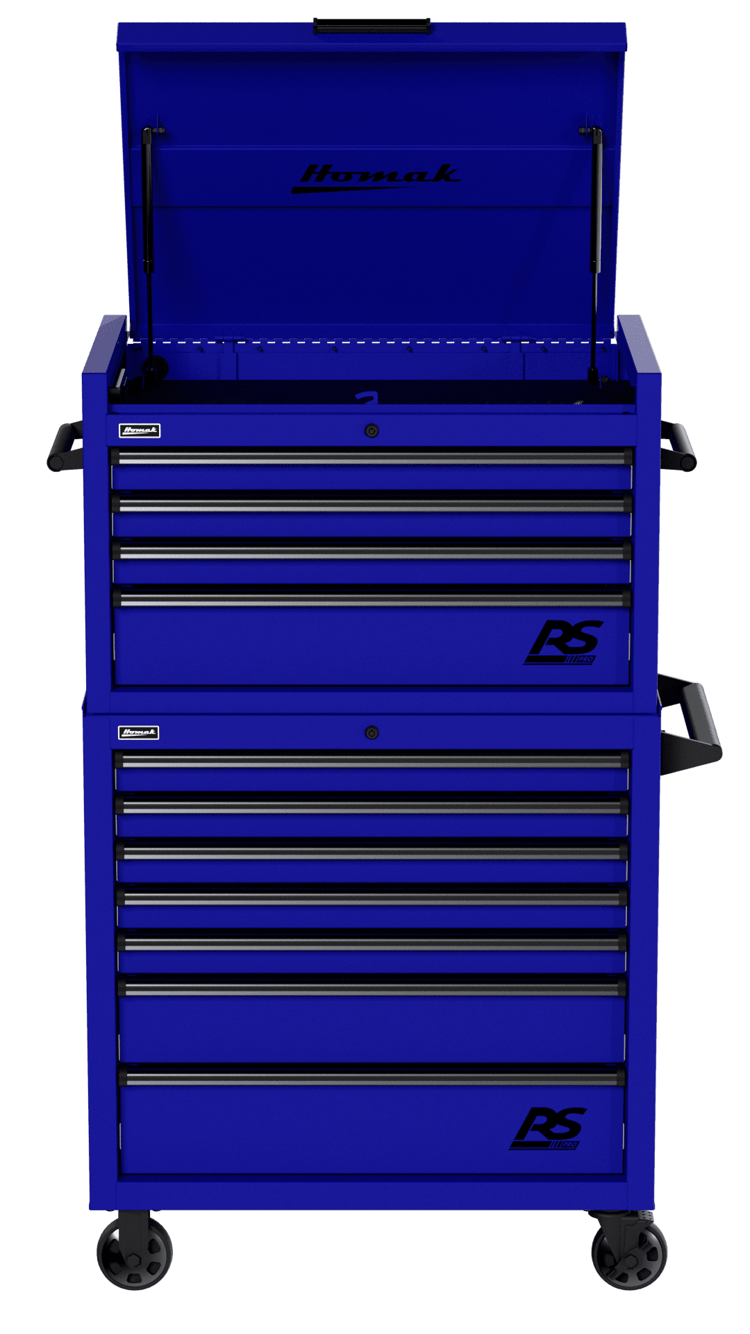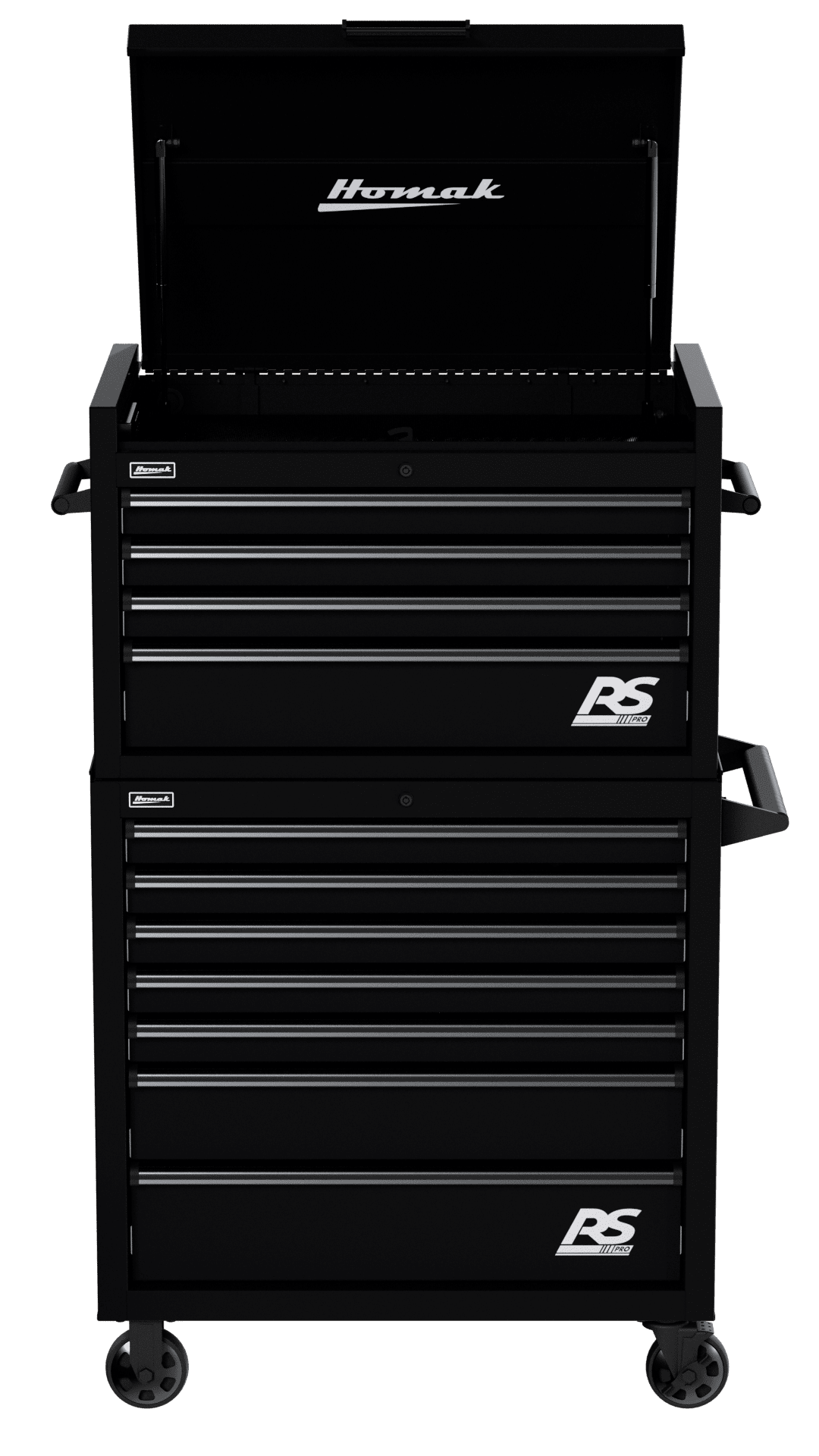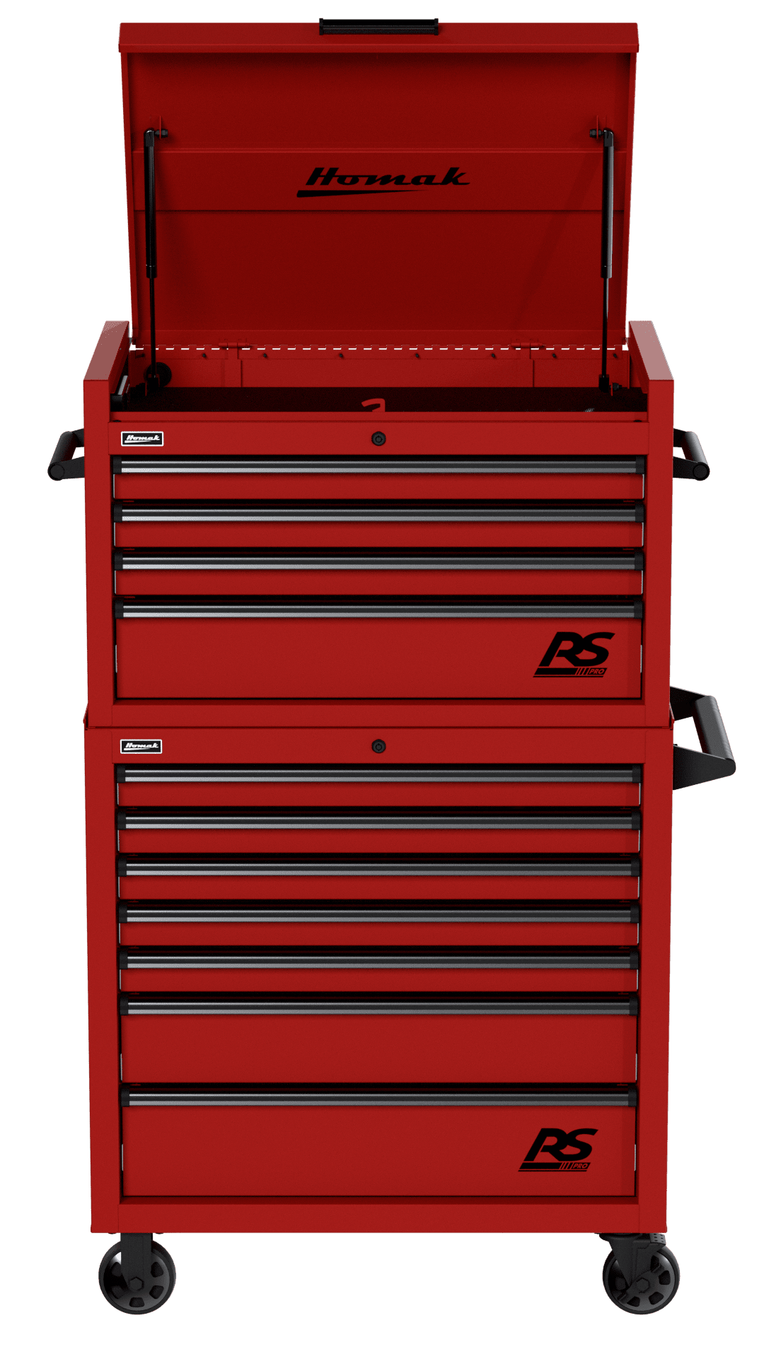 Top Chest includes four (4) drawers and lockable top till with full-extension gas struts and a power strip containing three (3) electric outlets to store and charge phones, laptops, and other devices.
