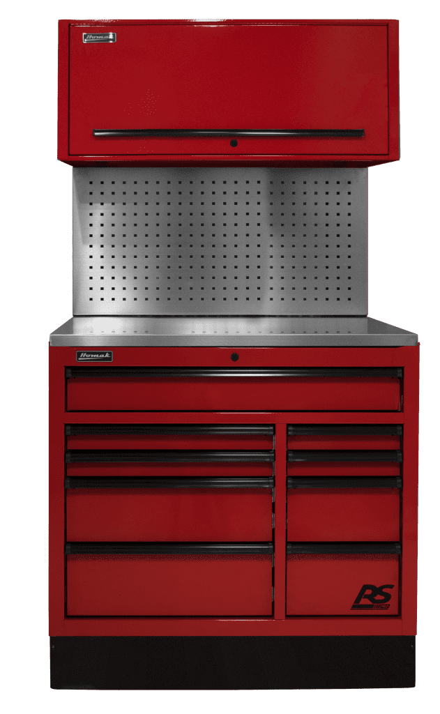 *Toolboard backsplash contains square peg holes for hanging and organizing hand tools
