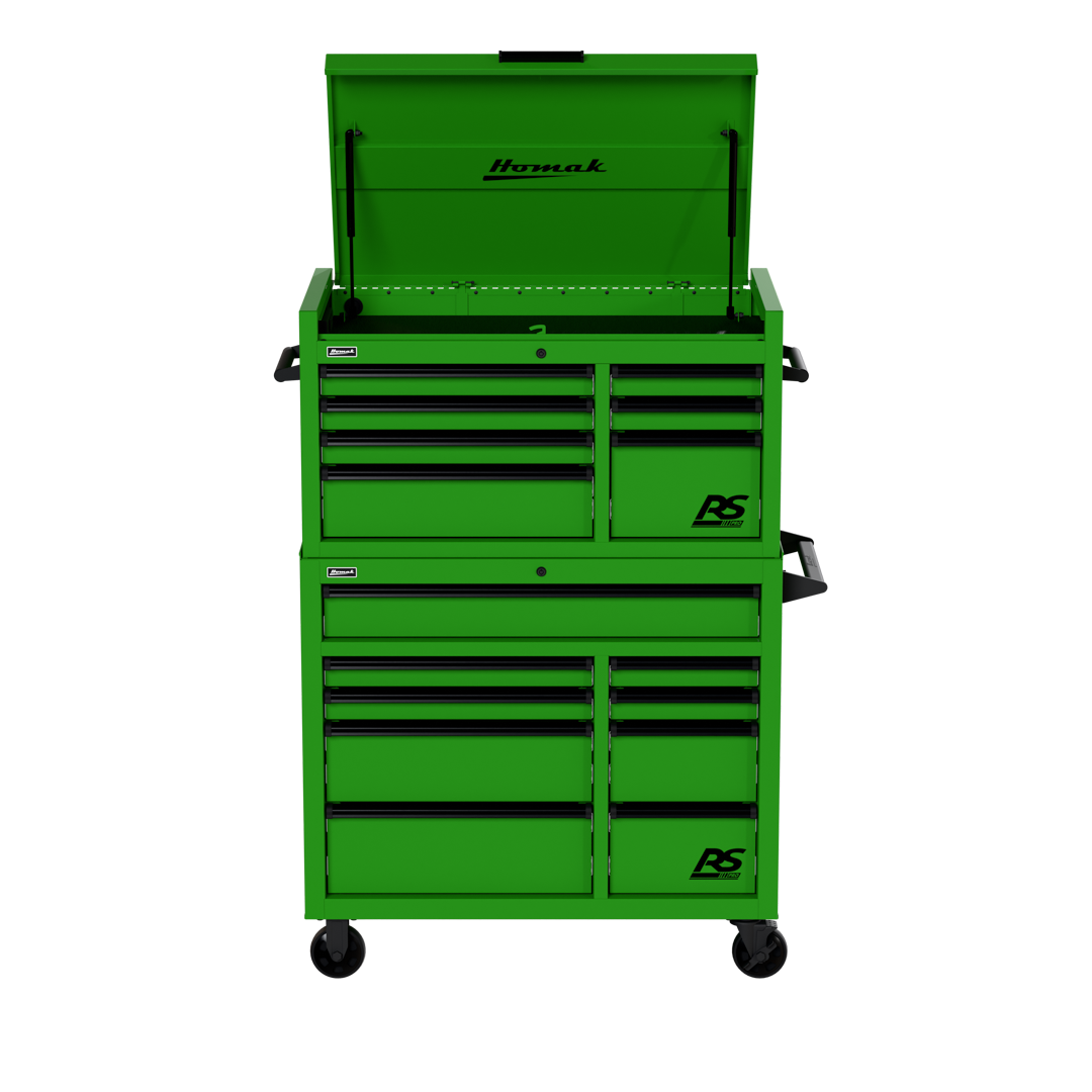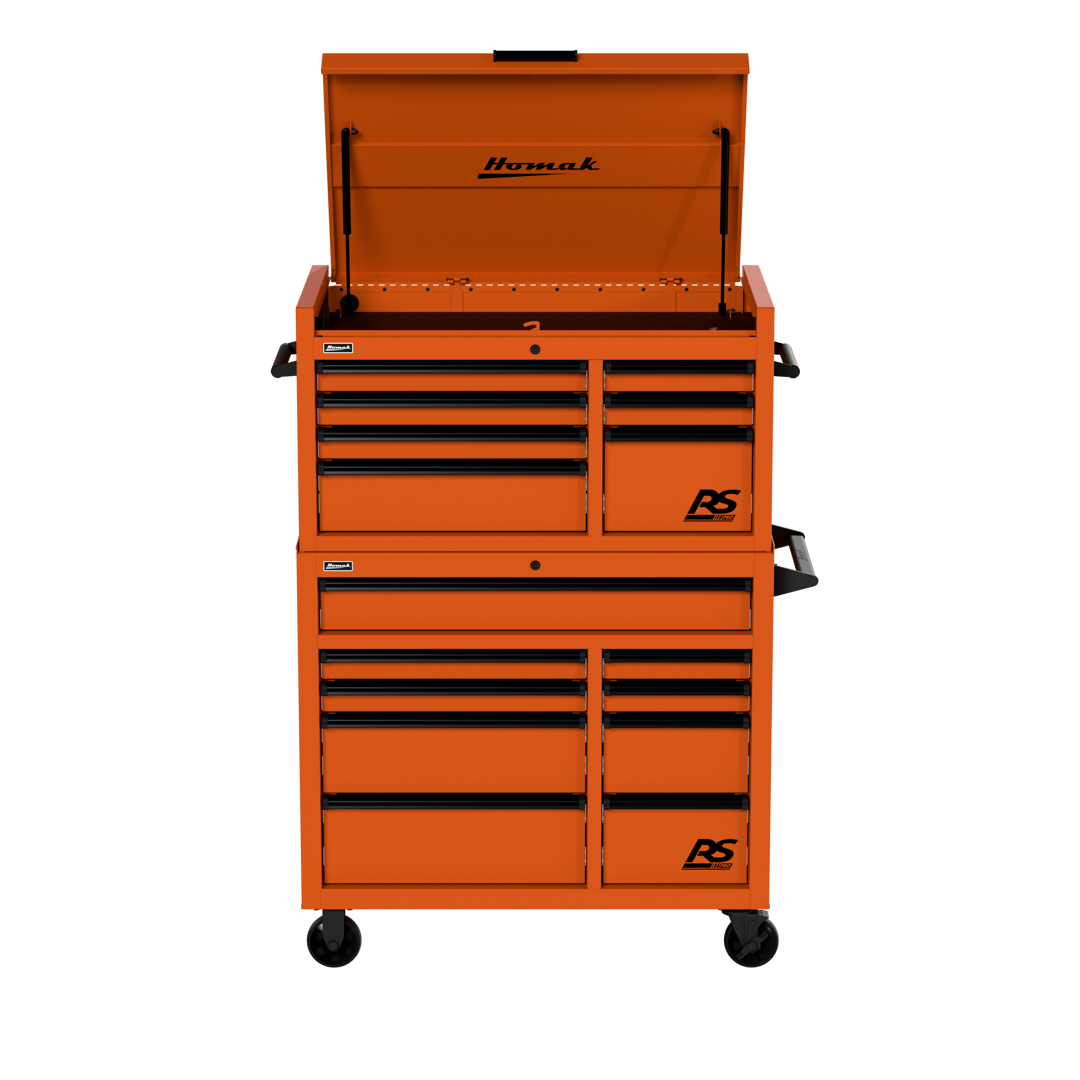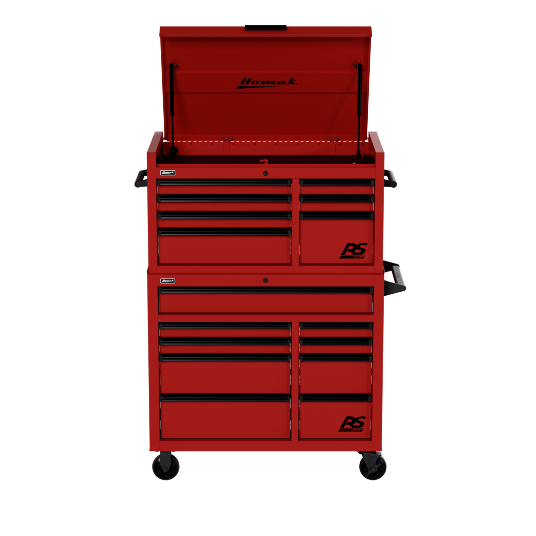 Top Chest includes seven (7) drawers and lockable top till with full-extension gas struts and a power strip containing three (3) electric outlets to store and charge phones, laptops, and other devices.