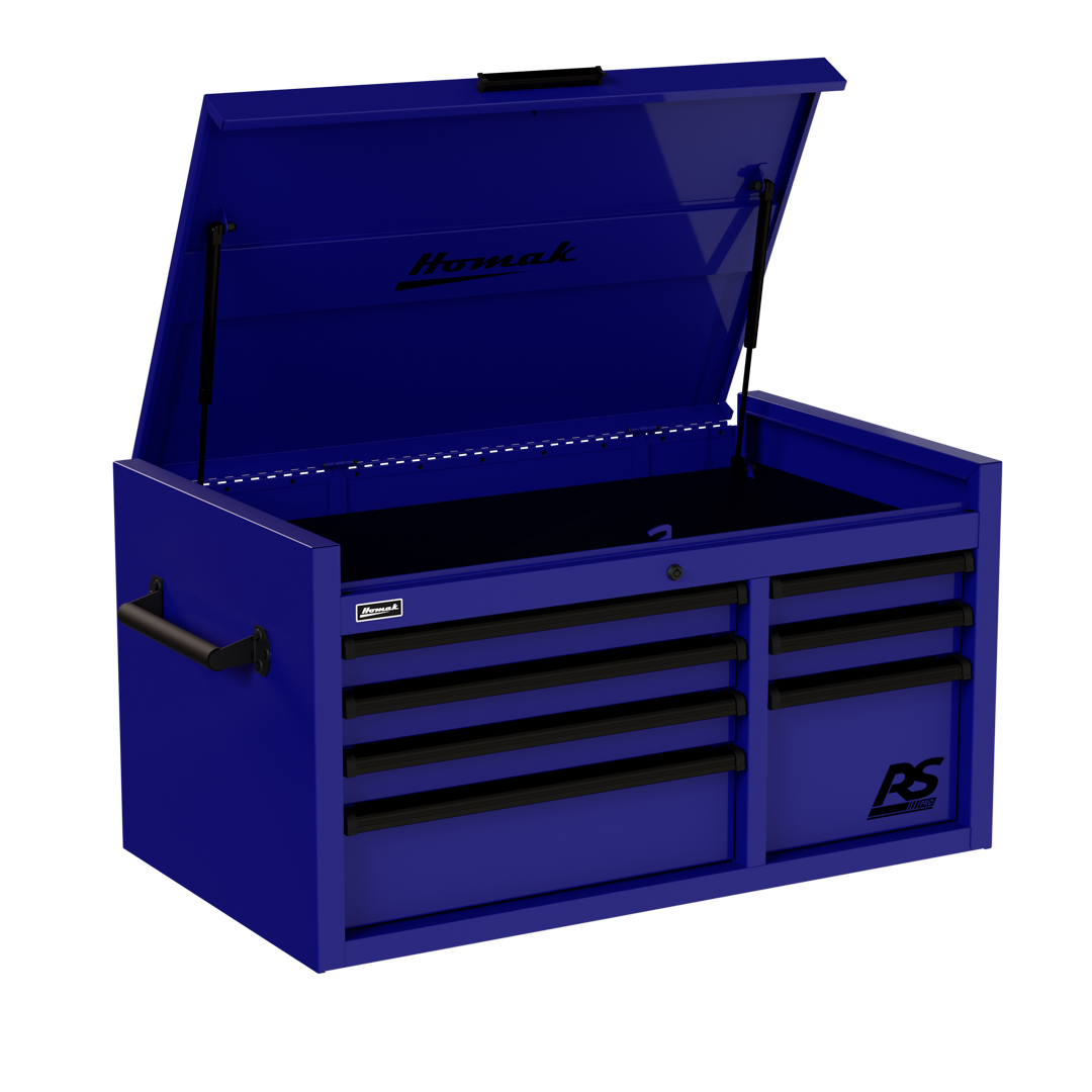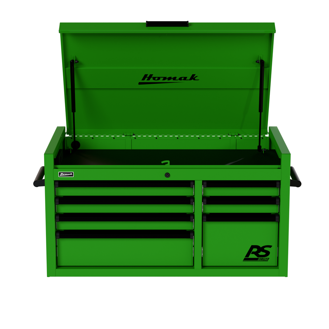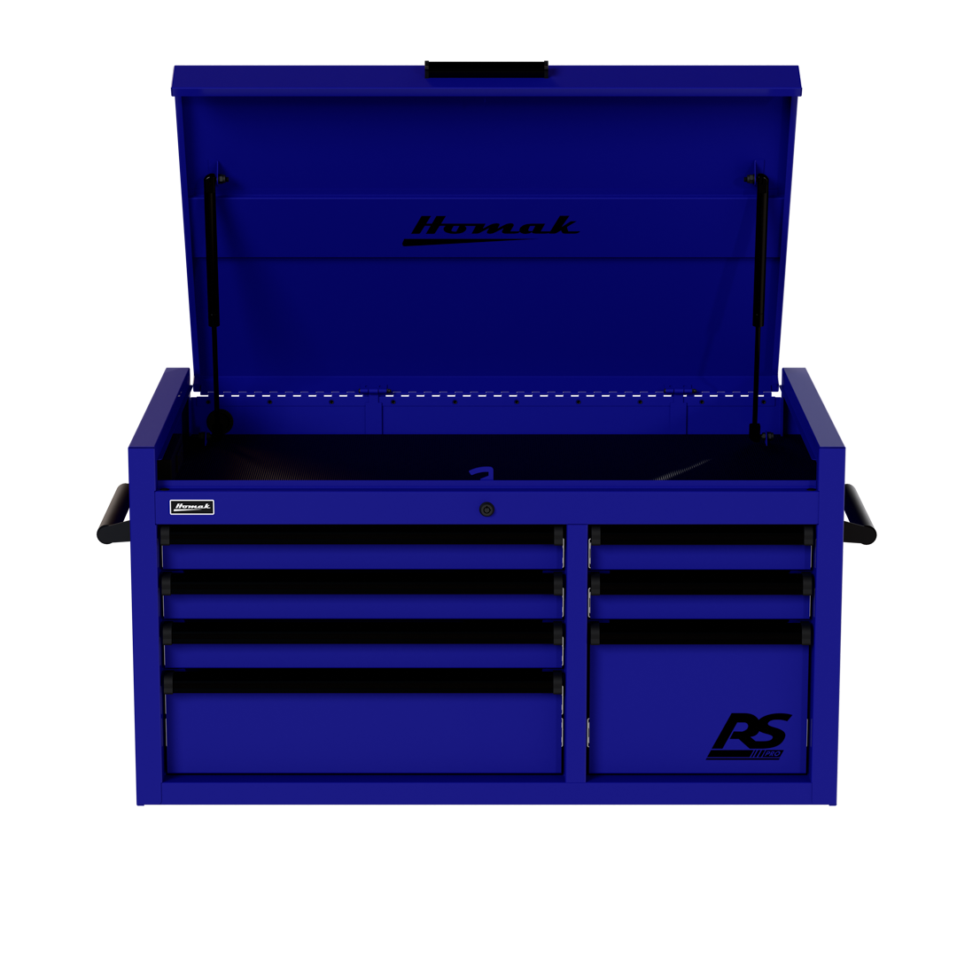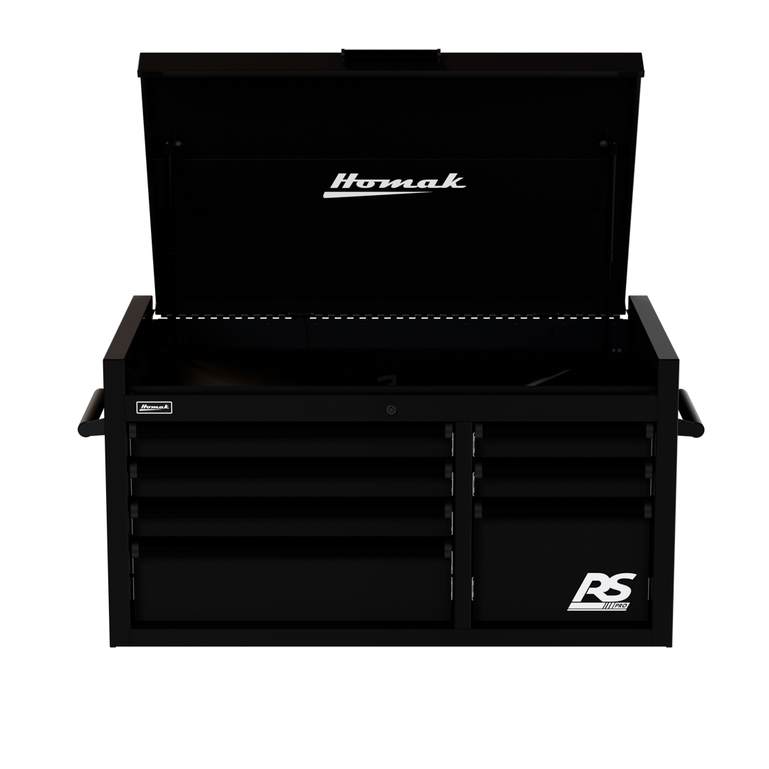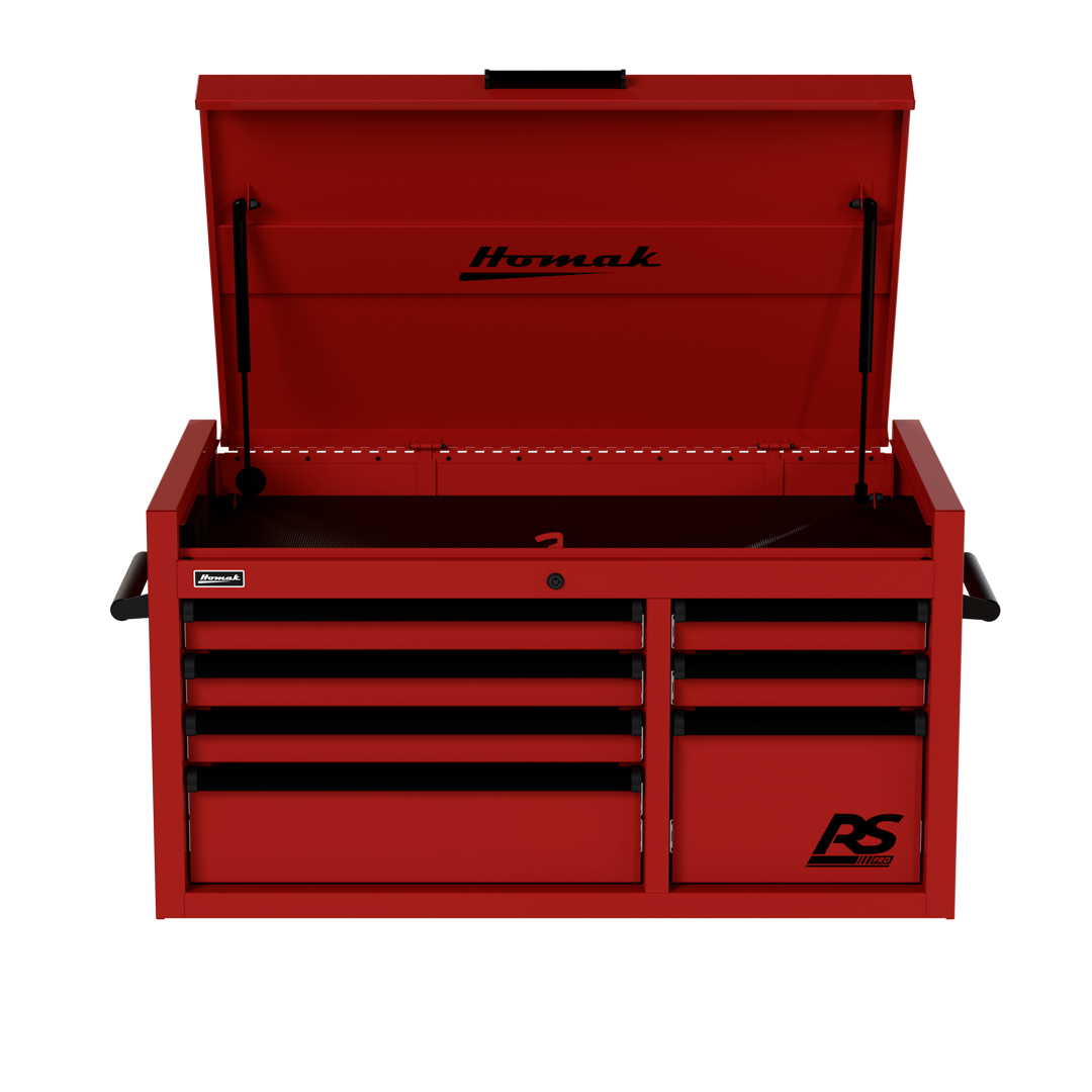 Since 1947, Homak has maintained its reputation as an industry leader in manufacturing durable products of exceptional quality. A business that started out manufacturing steel kitchen cabinets has evolved into a fierce competitor in the top toolbox space. The Homak 41″ Top Chest RS Pro’s sleek design perfectly complements any garage or workspace. Upgrade your top tool chest with a Homak.
