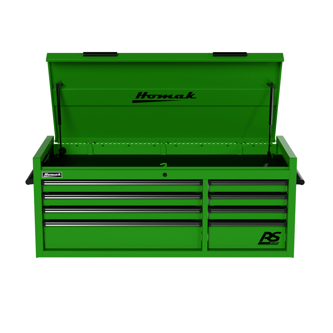 The 54″ Top Chest RS Pro comes in five bold colors: Fury Red, Midnight Black, Rally Sport Blue, Competition Orange, and Monster Green, ensuring that not only does it store your tools efficiently, but it also adds a touch of flair to your workspace. Experience the future of tool storage with the Homak 54″ Top Chest RS Pro.