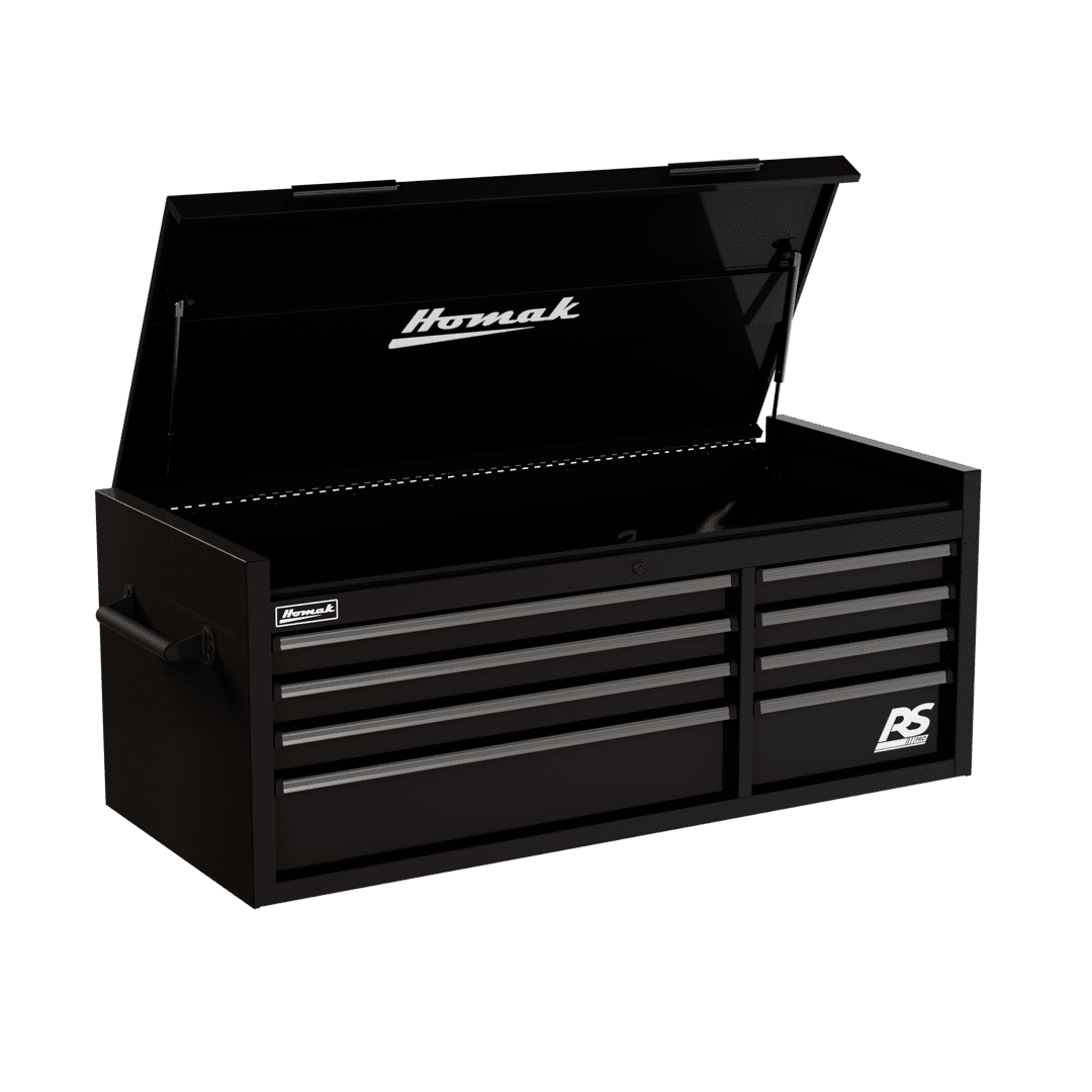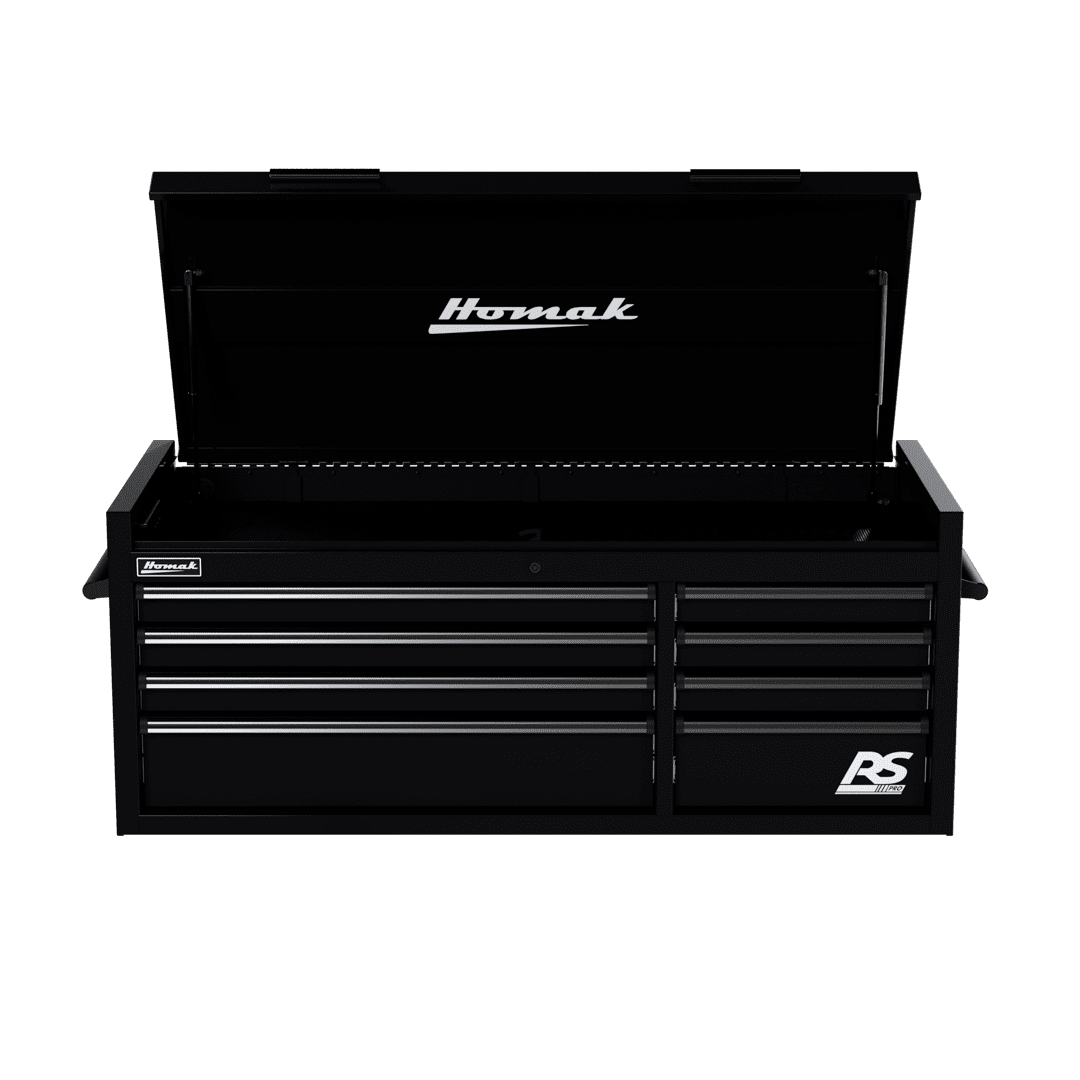 The Homak 54″ Top Chest RS Pro epitomizes advanced tool storage options for the modern garage or workspace. This top tool chest is not just a toolbox; it’s an investment in organization and durability. Designed as a top chest toolbox, its sleek structure fits perfectly as an upper toolbox on your workbench, seamlessly blending with other storage solutions or making a statement as a standalone benchtop toolbox.
