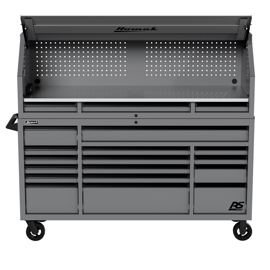 Since 1947, Homak has maintained its reputation as an industry leader in manufacturing durable products of exceptional quality. A business that started out manufacturing steel kitchen cabinets has evolved into a fierce competitor in the tool storage and gun cabinet industries. Homak’s 72″ RS PRO Hutch makes a great addition to an RS PRO 72-inch toolbox or an excellent upgrade from your current toolbox hutch. When you need dependability you can count on, nothing beats a Homak.