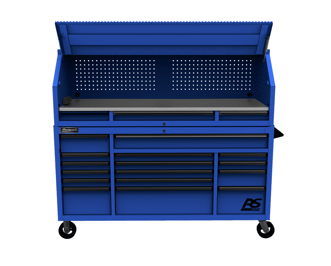 Since 1947, Homak has maintained its reputation as an industry leader in manufacturing durable products of exceptional quality. A business that started out manufacturing steel kitchen cabinets has evolved into a fierce competitor in the tool storage and gun cabinet industries. Homak’s 72″ RS PRO Hutch makes a great addition to an RS PRO 72-inch toolbox or an excellent upgrade from your current toolbox hutch. When you need dependability you can count on, nothing beats a Homak.