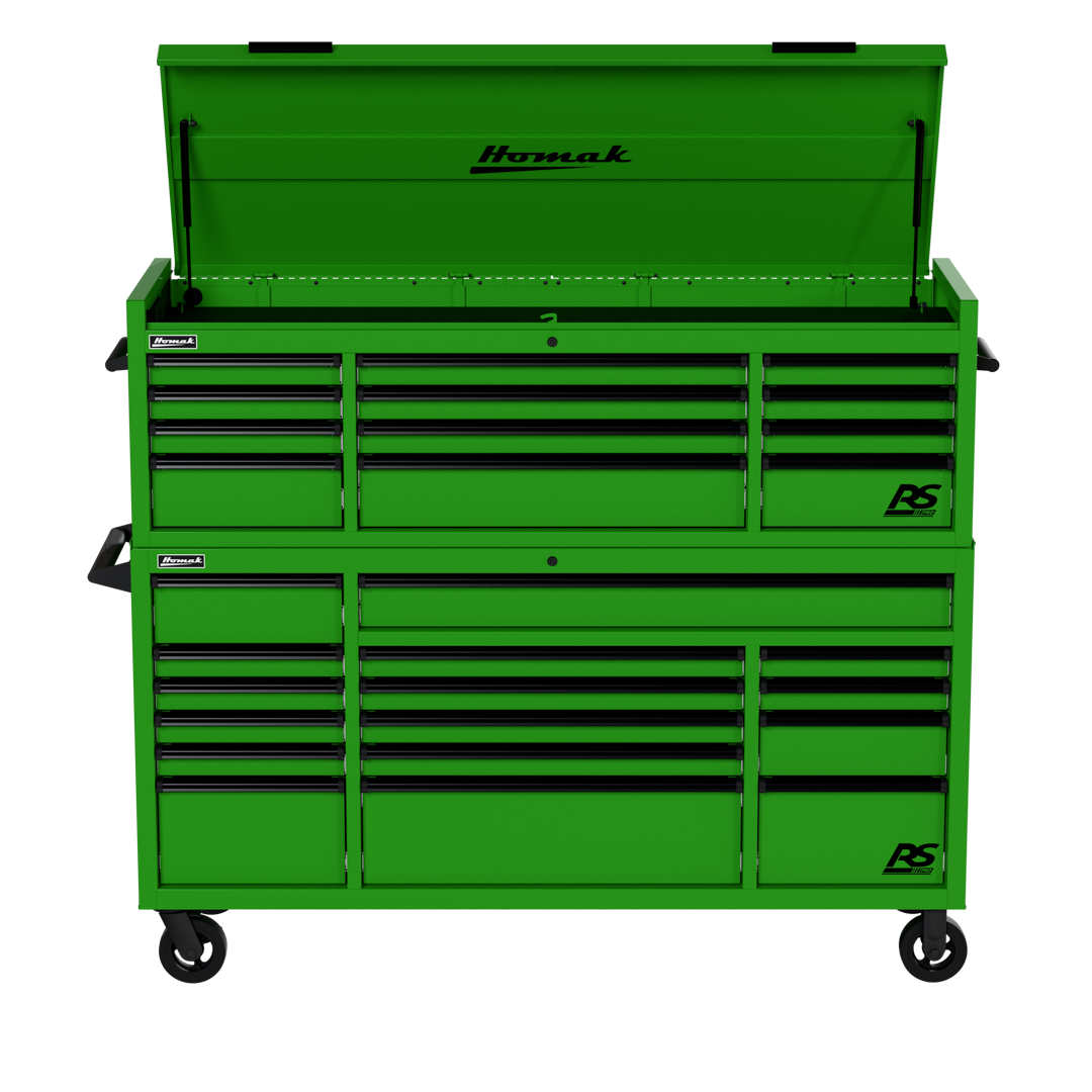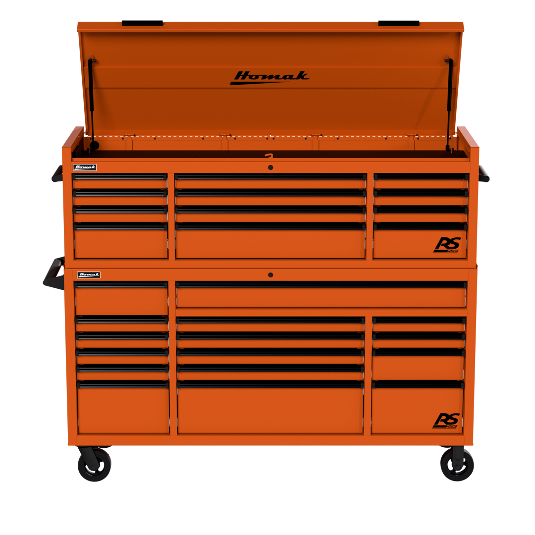 The Homak 72″ RS Pro Combo comes in five bold colors: Fury Red, Midnight Black, Rally Sport Blue, Competition Orange, or Monster Green.