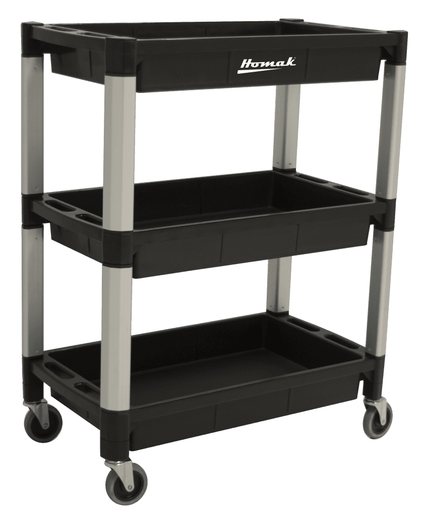Ergonomic push handles molded into top shelf for easy maneuvering
