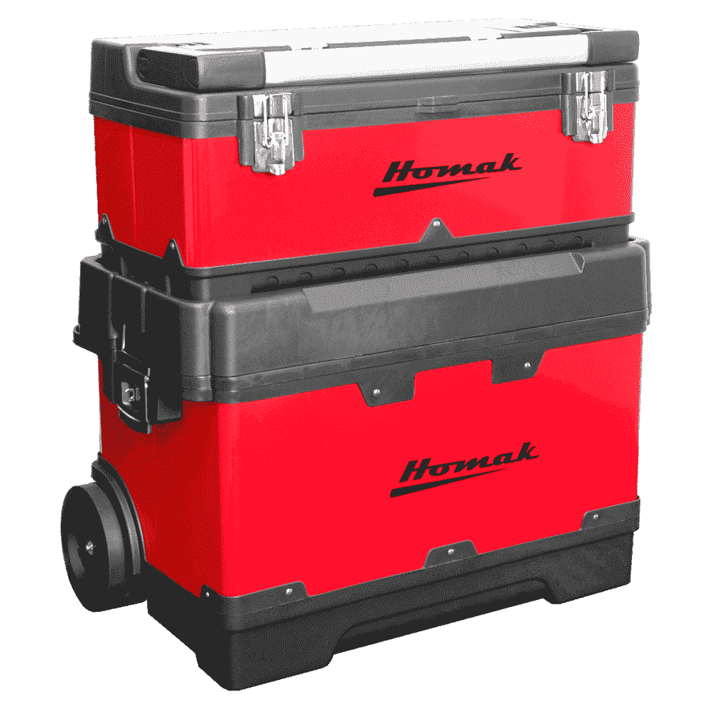 (1) Red Metal / Black Plastic Roll-Away Toolbox
